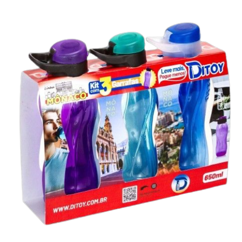 BOX MONACO PREMIUM 650ML ALÇA – 3 PCS: box premium com 3 garrafas, ideal para uso diário ou presente.
